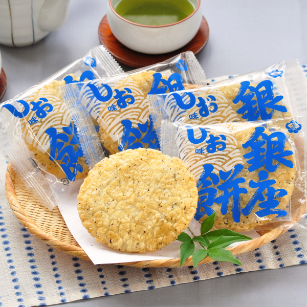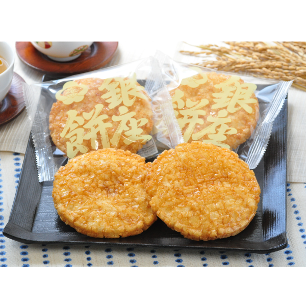 国産うるち米を使ったせんべいをカラッと揚げたあげせんです。お味は特製ダレで香ばしく仕上げた「醤油味」、アオサを加え磯の風味豊かな「塩味」の2種類。誰からも愛される飽きの来ないおいしさです。直径約10cmと大きなせんべいは食べごたえ抜群。個包装なので、いつでもサクッとした食感が楽しめます。